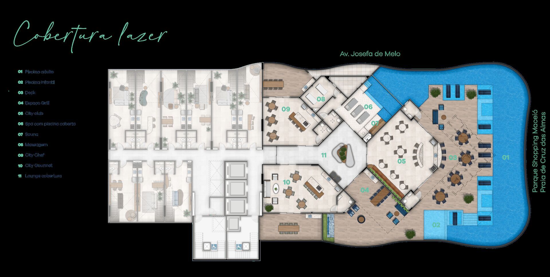 - Lazer e Relaxamento na Cobertura: Piscina Adulto (+230m²) e Infantil com vista panorâmica. City Gourmet, City Chef e Espaço Grill para encontros memoráveis.